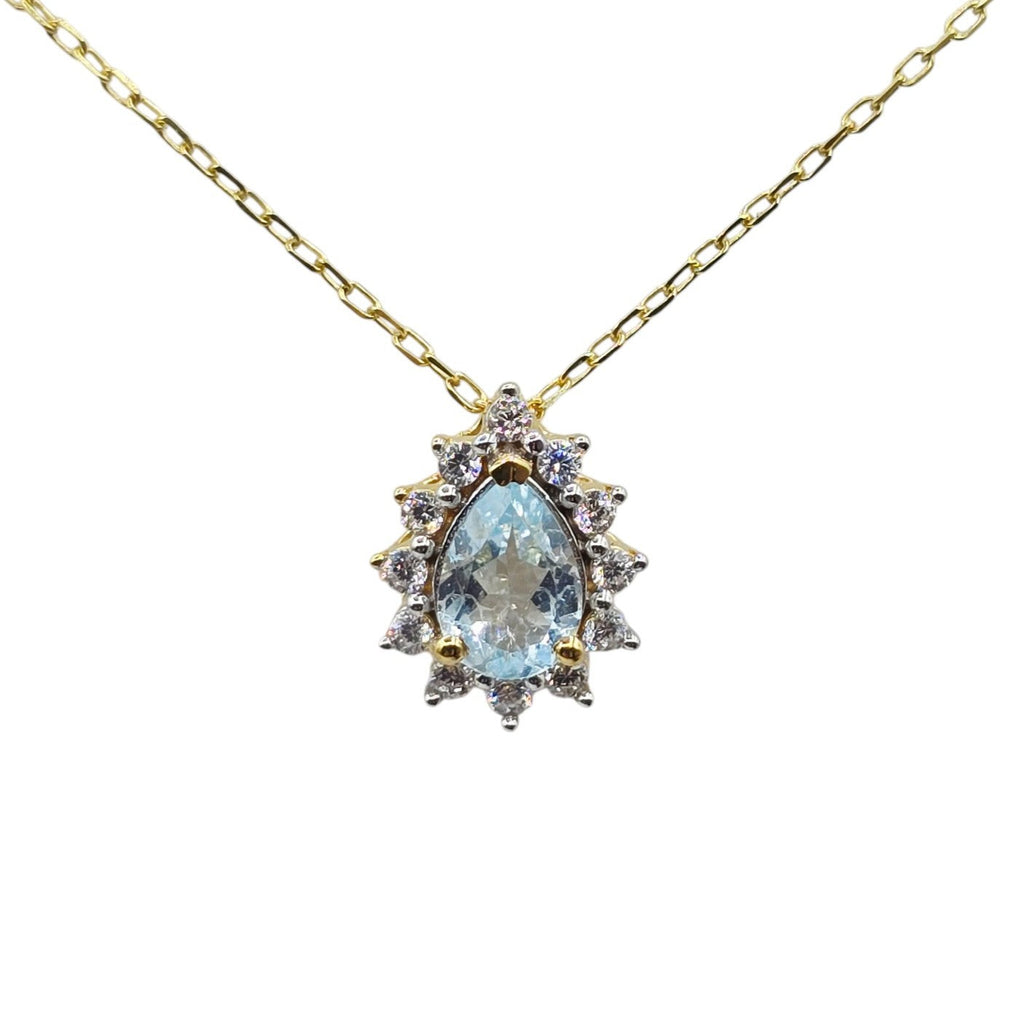 Sterling Silver Blue Topaz 7x5mm Pendant with Chain