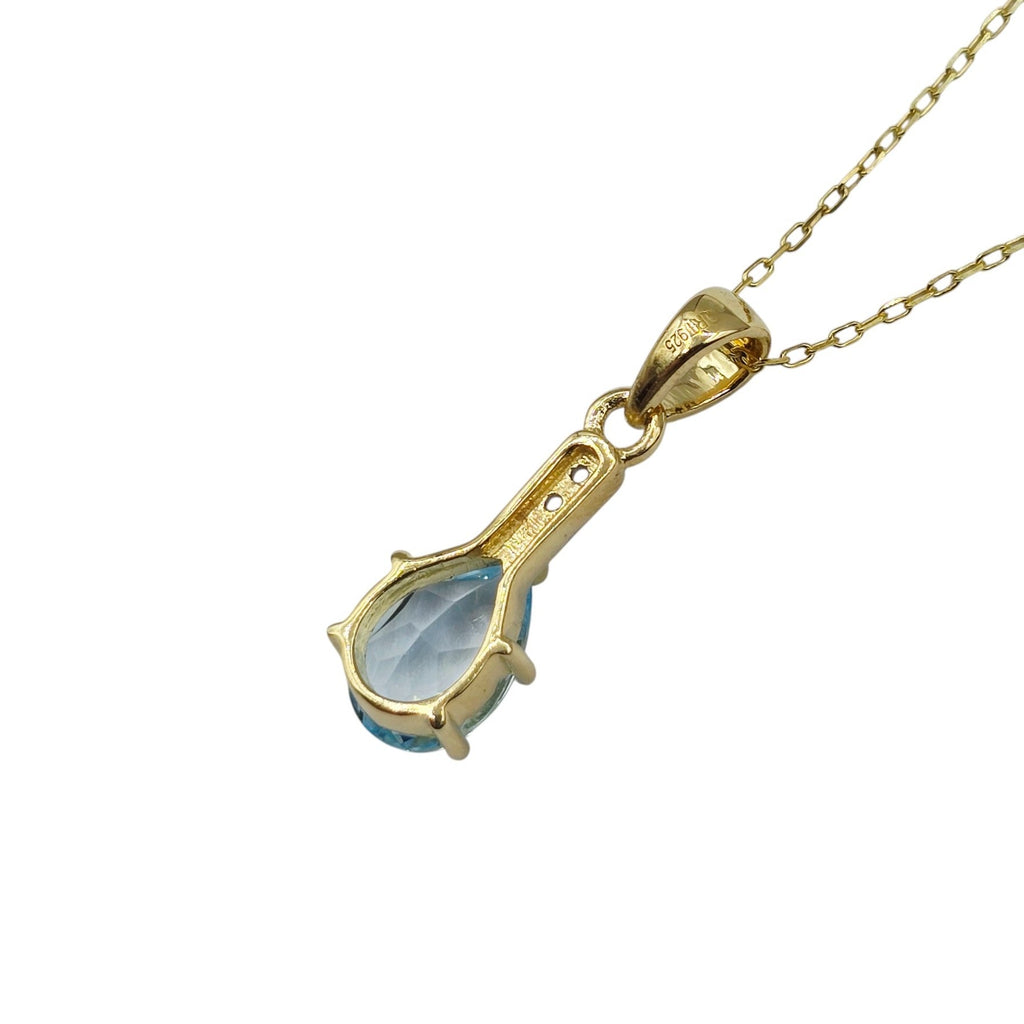 Sterling Silver Blue Topaz 10x7mm Pendant with Chain