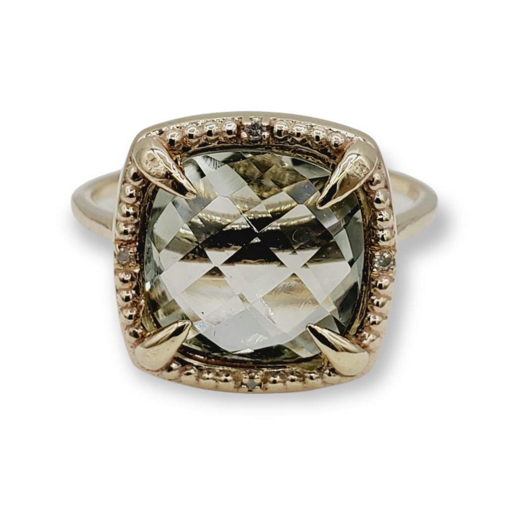 10K Yellow Gold Ring Set With Genuine Gemstones 10x10mm and Diamonds