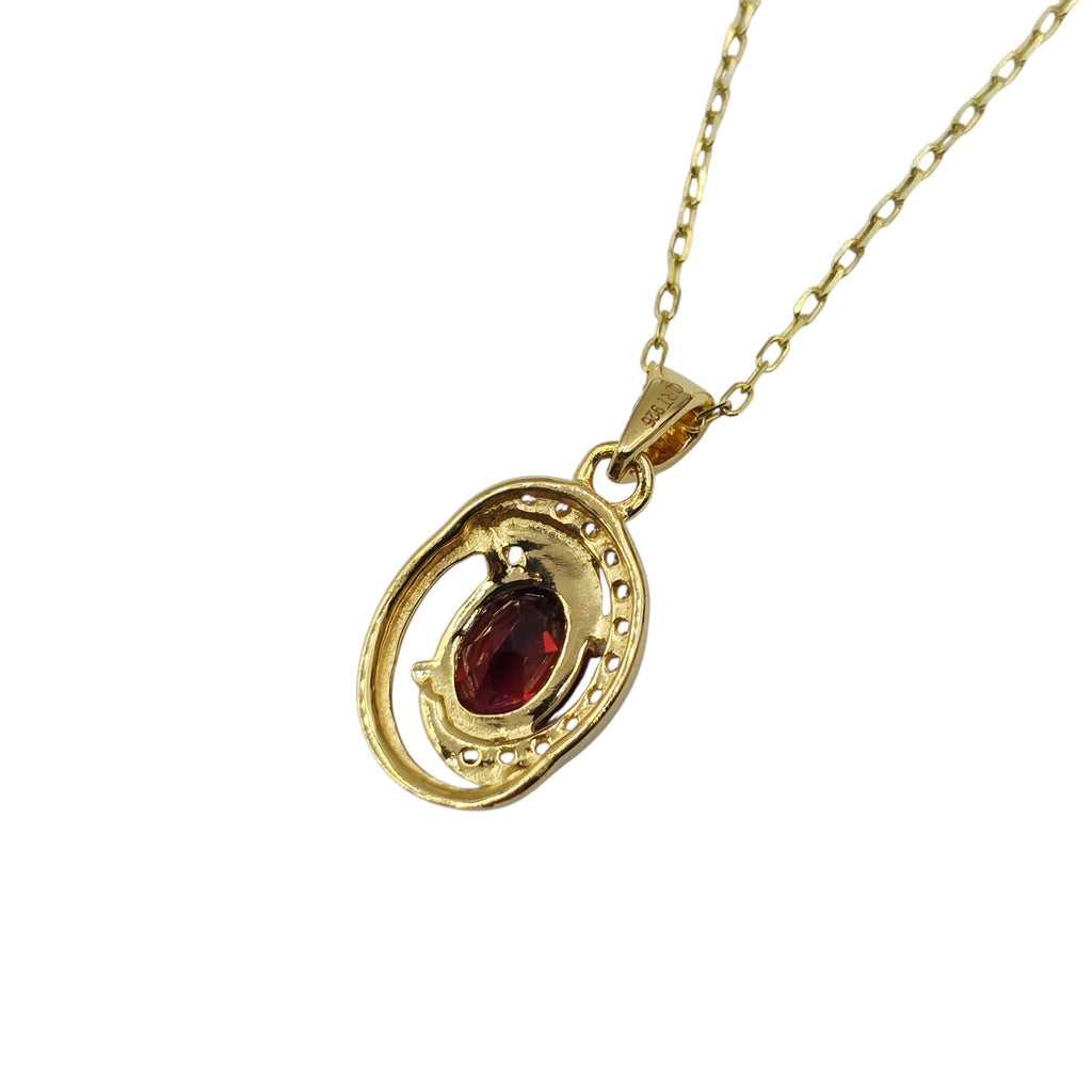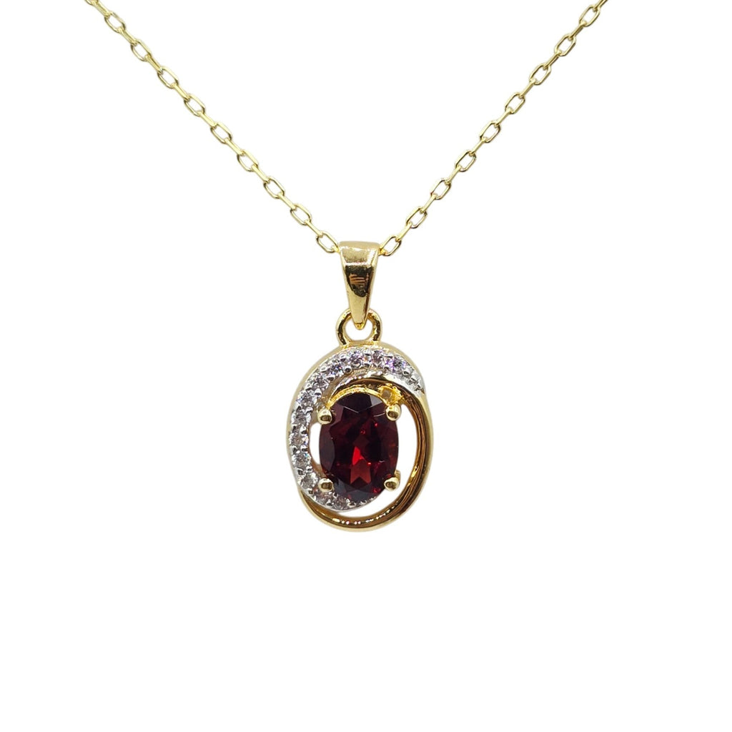 Sterling Silver Earrings and Necklace Set with Garnet 7x5mm